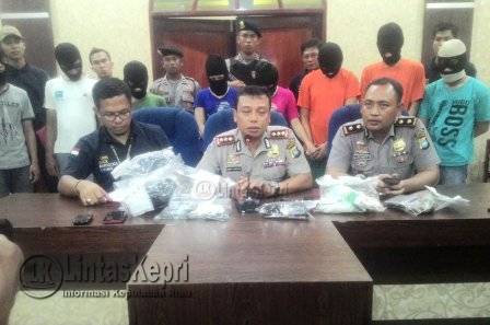 Dari 9 tersangka , tiga orang wanita dan enam orang laki-laki. Mereka ditangkap disejumlah tempat berbeda, mulai di TKP SPBU Batu 9, Puskesmas batu 10, tempat kos di batu 8, di jalan Kuantan dan sebuah penginapan.