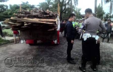 Tanjungpinang, LintasKepri.com – Truk bermuatan kayu Bernomor Polisi (Nopol) BP8211 TU yang diduga ilegal terjaring razia yang digelar Satuan Lalulintas (Satlantas) Polres Tanjungpinang di Lapangan Pamedan, Jalan Ahmad Yani, Kilometer 4, Jumat (19/2).