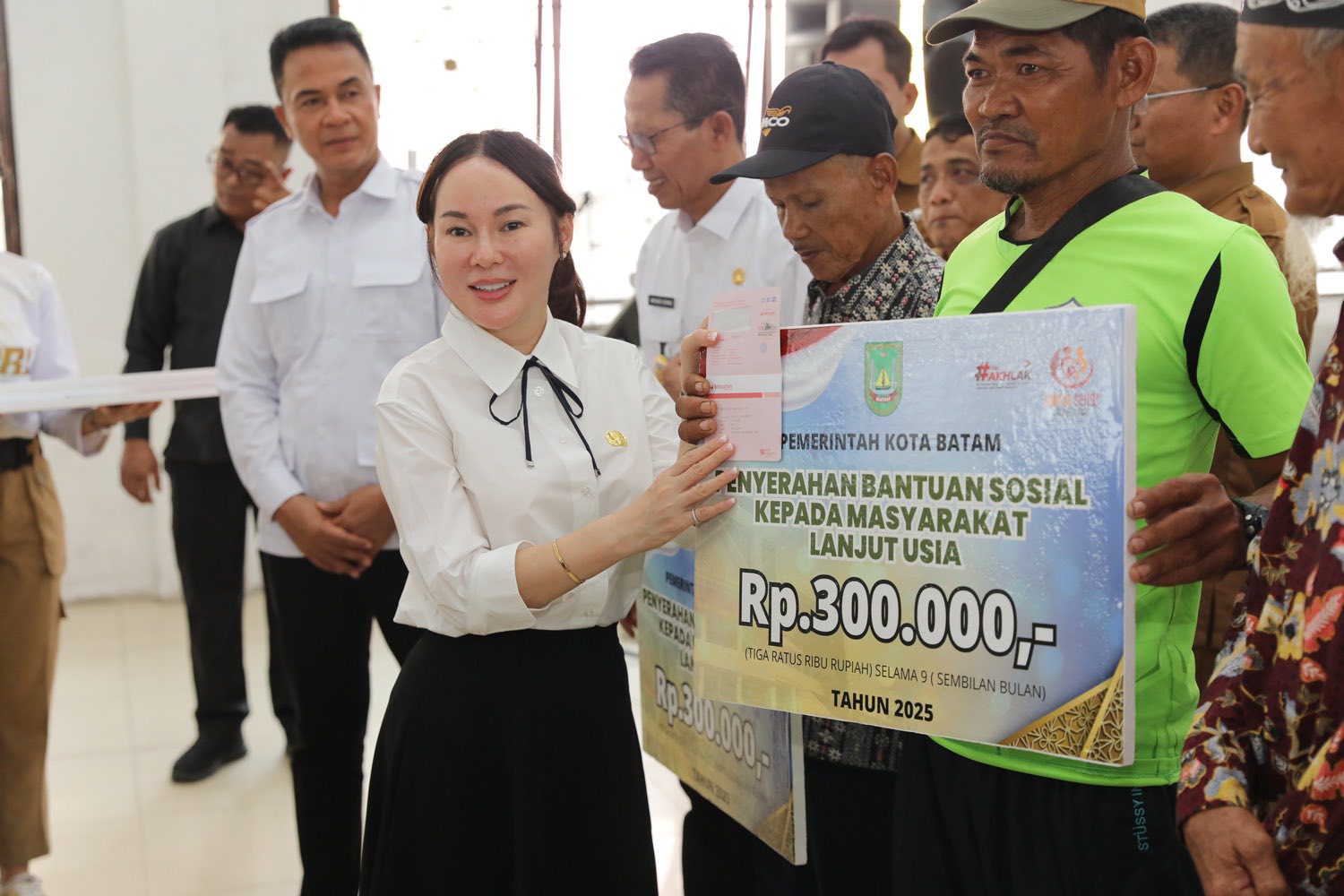 Lintaskepri.com, Batam — Wali Kota Batam Amsakar Achmad bersama Wakil Wali Kota Li Claudia Chandra menyerahkan bantuan sosial (bansos) kepada para lanjut usia (lansia) di Kecamatan Belakangpadang, Senin (5/5/2025), bertempat di Gedung Nasional Sekanak Raya.
