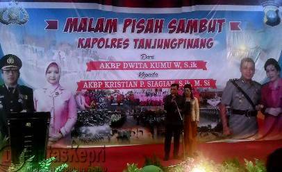 “Seperti semboyan kepolisian, saya siap melayani 24 jam masyarakat Kota Tanjungpinang, kalau bisa 25 jam, karena 24 terasa kurang untuk melayani masyarakat,” kata AKBP Kristian P Siagian ketika memberi kata sambutan diacara pisah sambut antara dirinya dengan Kapolres yang lama yakni AKBP M Dwita Kumu Wardana S Ik, di balroom hotel Bintan Bech Resort (BBR) jalan Pantai Impian kota Tanjungpinang, Rabu (30/09).