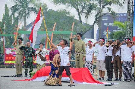 Puncak kemeriahan peringatan HUT TNI ke-70 ketika para prajurit dan batalyon TNI menampilkan aksi teatrikal drama kolosal perjuangan Panglima Besar Jendral Sudirman, paggelaran atraksi senjata, bela diri, serta barisan devile dari peserta upacara.