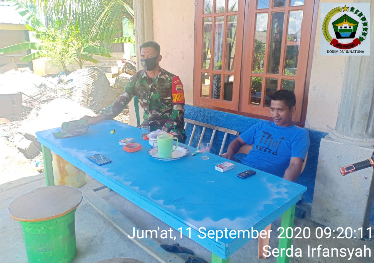 Hal ini juga yang dilakukan Serda Irfansyah, Babinsa Koramil 03/Sedanau Kodim 0318/Natuna, di Desa Setumuk Kecamatan Pulau Tiga Barat, pada Sabtu (12/09/2020) pagi.