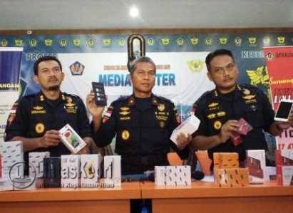 Bertempat di Ruang Media Centre, Karimun, sekitar pukul 09.00 WIB, Kanwil DJBC Khusus Kepri saat press rilis dihadapan wartawan menjelaskan, adapun barang-barang yang berhasil diamankan yaitu bawang merah asal Malaysia, Handphone dari kawasan bebas Free Trade Zone (FTZ) Batam, dan rokok.