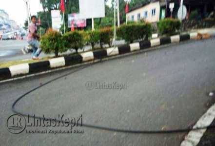 Kabel yang putus akibat tertimpa pohon di Kilometer 6 Kota Tanjungpinang