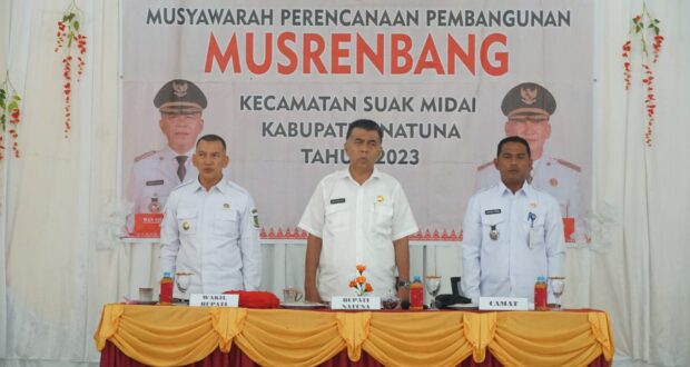 NATUNA , Lintaskepri.com – Usai meresmikan puskesmas Suak Midai, Bupati Natuna berserta rombongan melanjutkan kunjungan kerja dengan agenda Musrenbang Kecamatan Suak Midai Rabu 15 Februari 2023.