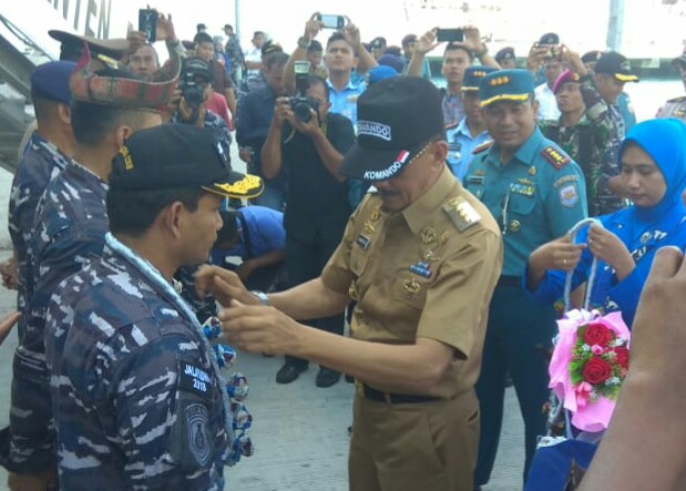 Kedatangan mereka di Faslabuh Selat Lampa, disambut langsung oleh Bupati Natuna Abdul Hamid Rizal, Danlanal Ranai Kolonel Laut (P) Harry Setyawan, Ketua DPRD Natuna Yusripandi, Danlanud RSA Ranai Kolonel (Pnb) Prasetiya Halim, Dandim 0318/Natuna Letkol (Inf) Yusuf Rizal, Danyon Komposit I/Gardapati Letkol (Inf) Ahmad Daud Harahap, Kapolres Natuna AKBP Nugroho Dwi Karyanto, para perwira dan prajurit TNI AL, Kades Sabang Mawang Barat Zakaria dan puluhan pelajar SMAN 1 Pulau Tiga.