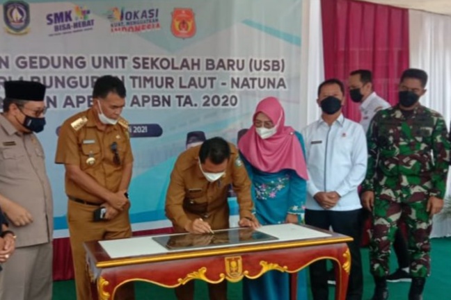 Natuna, LintasKepri.com – Bupati Natuna, Wan Siswandi menyampaikan terimakasih kepada Gubernur Kepri, Ansar Ahmad telah meresmikan Sekolah Menengah Kejuruan (SMK) Negeri 1 Bunguran Timur Laut (BTL), Selasa (06/07/2021) kemarin.