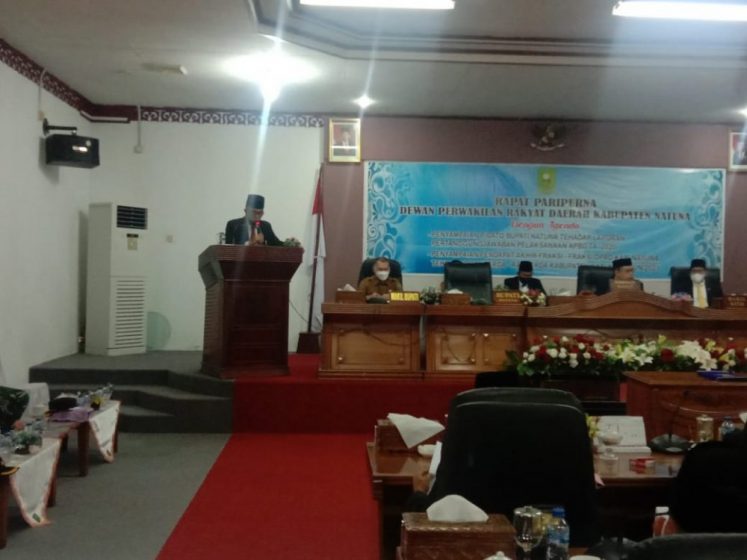 Hal ini diungkapkan oleh Bupati Natuna, Wan Siswandi dalam forum Rapat Paripurna dengan agenda penyampaian pidato dalam Laporan Pertanggungjawaban Pelaksanaan APBD Tahun Anggaran 2020, pada hari Senin (21/06/2021) siang, di Ruang Rapat Paripurna Kantor DPRD Natuna, jalan Yos Sudarso keurahan Batu Hitam, yang dipimpin langsung oleh ketua DPRD Natuna, Daeng Amhar.