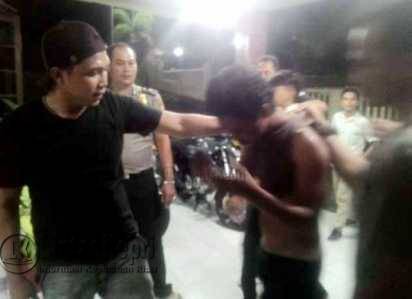 Menurut warga yang memboyong pemuda bernasib malang ini mengatakan pemuda itu mengamuk dan bersikap kurang pantas di Jalan Rumah Sakit Kampung Jawa.