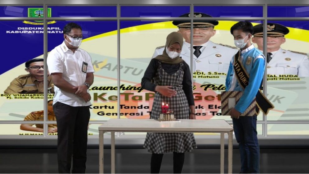 Natuna, LintasKepri.com – Dinas Kependudukan dan Pencatatan Sipil (Disdukcapil) Kabupaten Natuna juga mengukuhkan Duta Dukcapil serta penyerahan KTP Elektronik kepada anggota Masyarakat, dalam hal ini pelajar SLTA, sebagai pemilik KTP Perdana. Hal ini sekaligus Launching program Kadoku Ketapel Getah, Rabu (11/08/2021) di RRI Ranai.