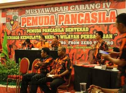 Tanjungpinang, LintasKepri.com – Majelis Pimpinan Cabang (MPC) Pemuda Pancasila Kota Tanjungpinang, menggelar Musyawarah Cabang (Muscab) IV Pemilihan Ketua Pemuda Pancasila Kota Tanjungpinang di Auditorium Hotel Aston Tanjungpinang, Senin (09/11).