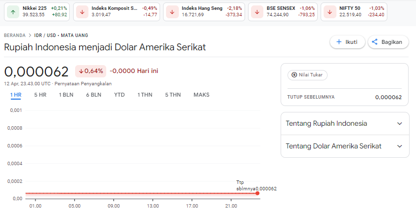Lintaskepri.com, Tanjungpinang – Nilai tukar rupiah terpantau melemah terhadap dolar Amerika Serikat (AS) pada pagi ini, Sabtu (13/4/2024).