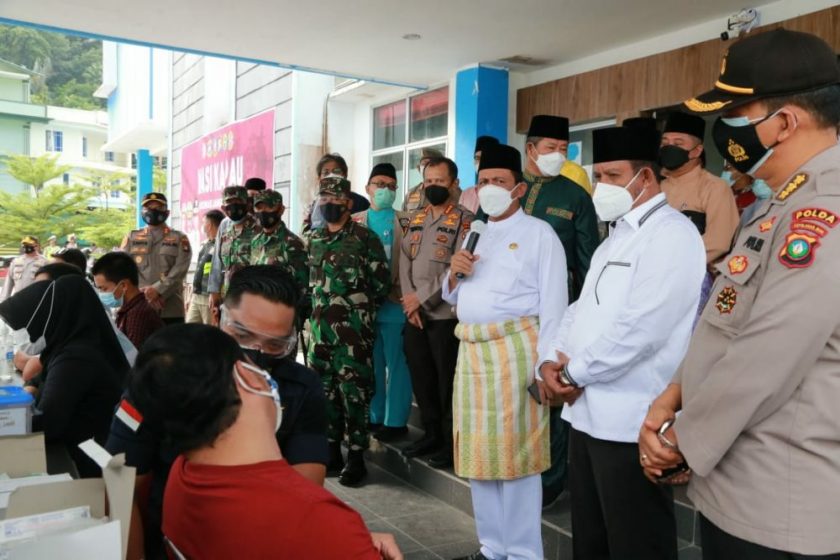 Gubernur meminta per hari semua kecamatan di Kabupaten Anambas bisa memvaksin 300 masyarakat lebih. Jangan di bawah angka tersebut.