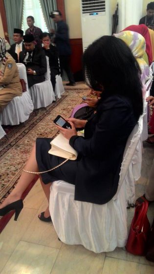 Bahkan sebagian pejabat yang hadir terlihat asik dengan selulernya masing-masing, serta sebagian berbicara satu dengan lainnya, dari pada mendengarkan pidato yang disampaikan orang nomor satu di Provinsi Kepri yang beberapa hari lagi selesai masa tugasnya.