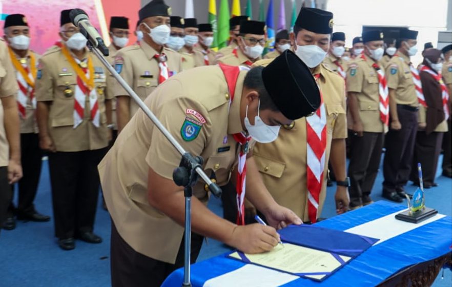 LINTASKEPRI.COM, BINTAN – Gubernur Kepulauan Riau H. Ansar Ahmad selaku Ketua Majelis Pembimbing Daerah (Mabida) Gerakan Pramuka Kepri melantik Ketua dan Pengurus Majelis Pembimbing Cabang (Mabicab) serta Ketua dan Pengurus Kwartir Cabang (Kwarcab) Gerakan Pramuka Bintan Masa Jabatan 2022-2027 di Aula Kantor Bupati Bintan, Rabu (13/07).