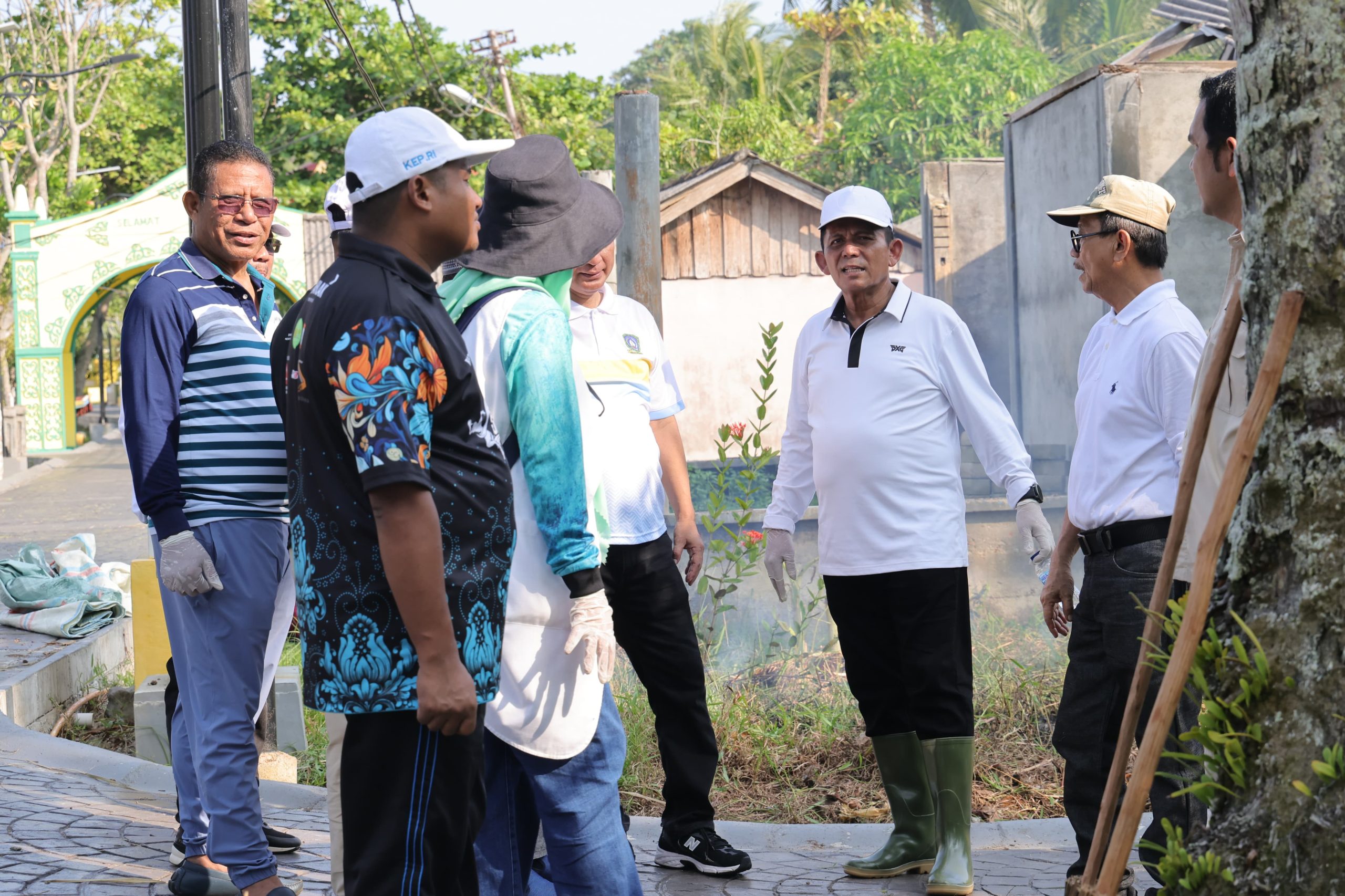Gubernur Ansar menyatu bersama warga membersihkan jalur menuju Balai Adat Pulau Penyengat, didahului dengan pengarahan dan semangat gotong royong dari Balai Kelurahan.