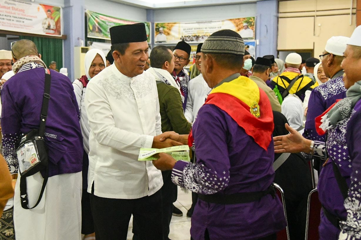 Suasana penuh haru dan syukur menyelimuti acara tersebut, menandai kembalinya para tamu Allah setelah menunaikan rukun Islam kelima di Tanah Suci.
