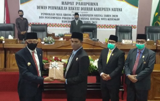 Natuna, LintasKepri.com – Bupati Natuna, Abdul Hamid Rizal, menyampaikan pidato pengantar nota keuangan dan rancangan Anggaran Pendapatan dan Belanja Daerah (APBD) tahun anggaran 2021.