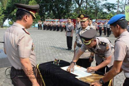 Selanjutnya, setelah memberikan penyematan dilanjutkan dengan penandatanganan fakta integritas kepada lima perwira tersebut. Kemudian, kegiatan dilanjutkan dengan acara pisah sambut yang diselenggarakan di Gedung Balai Antam Seludang, Makopolres Tanjungpinang. (Aji Anugraha)