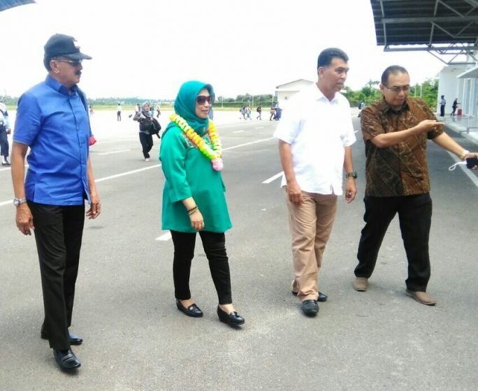 Kedatangan Hernuningsih di Bandara Ranai, ditemui langsung oleh Bupati Natuna, H. Abdul Hamid Rizal beserta Sekda Natuna, Wan Siswandi.