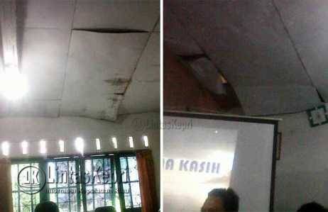 Kondisi di kantor tersebut terlihat bagian bangunan seperti plafon yang terbuat dari triplek sudah lapuk dan menganga hampir copot, diduga kurang terawat.