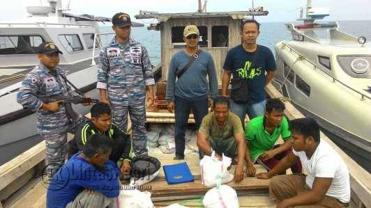 Tim WFQR 4 Lanal Dabo Singkep segera bergerak cepat melakukan proses pemeriksaan dan penggeledahan terhadap KM Kawal Jaya-1.