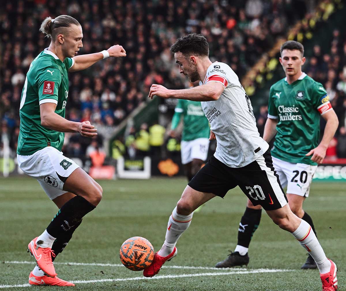 Meski menurunkan trio Federico Chiesa, Diogo Jota, dan Luis Díaz di lini serang, Liverpool kesulitan menembus pertahanan rapat Plymouth. Jarak antarlini yang terlalu jauh membuat distribusi bola ke depan tidak efektif.