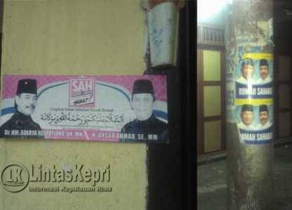 Tanjungpinang, Lintaskepri.com – Pemilihan Kepala Daerah (PILKADA) yang akan dilaksanakan secara serentak sudah diambang mata. Namun hingga hari ini, Senin (7/12) pukul 00.15 WIB poster kedua Pasangan Calon Gubernur (Cagub) dan Calon Wakil Gubernur (Cawagub) Provinsi Kepulauan Riau yang akan bertarung pada, Rabu (9/12) masih banyak ditemukan terpasang dirumah warga, Wisma serta di Rumah Toko (Ruko) di Kota Tanjungpinang.