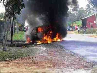 Kejadian itu juga menjadi tontonan masyarakat dan pengemudi sepeda motor yang melintas. Saat ini dua orang korban pengendara mobil yang menjadi korban kebakaran tersebut telah di evakuasi ke Puskesmas terdekat. (Aji Anugraha)