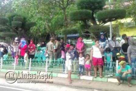 Pantauan Lintaskepri.com dilapangan, terlihat ribuan masyarakat menyaksikan jalannya acara, meskipun diguyur hujan, tidak menyurutkan masyarakat untuk menyaksikan jalanya acara tersebut. Bahkan tanaman yang ditanam Pemko dengan uang APBD di taman yang ada disekeliling panggung terinjak-injak oleh penonton.