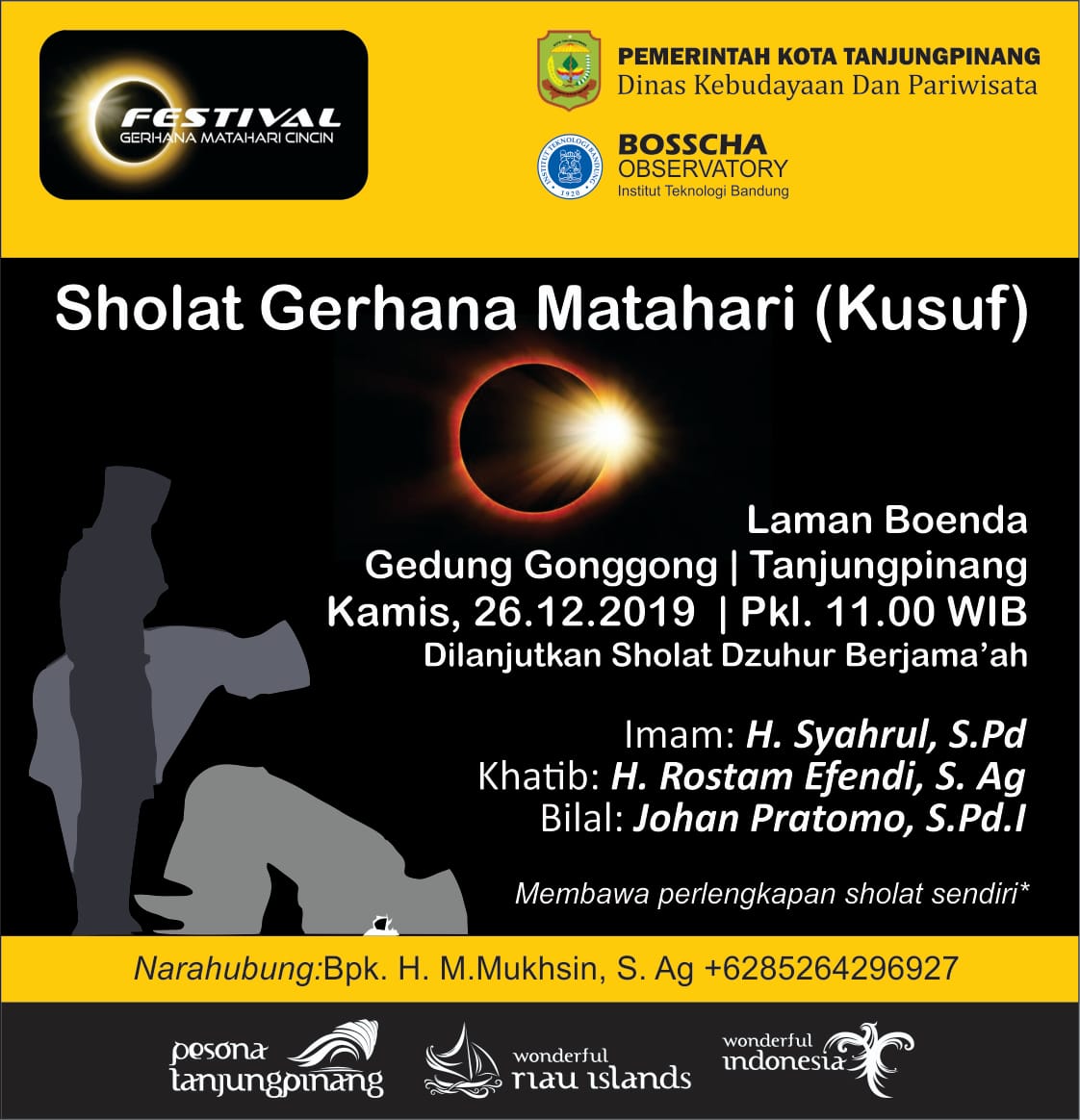 Gerhana matahari cincin akan melintasi Tanjungpinang dengan durasi waktu 3 menit 36 detik, mulai pukul 10.26 hingga 10.29 WIB.