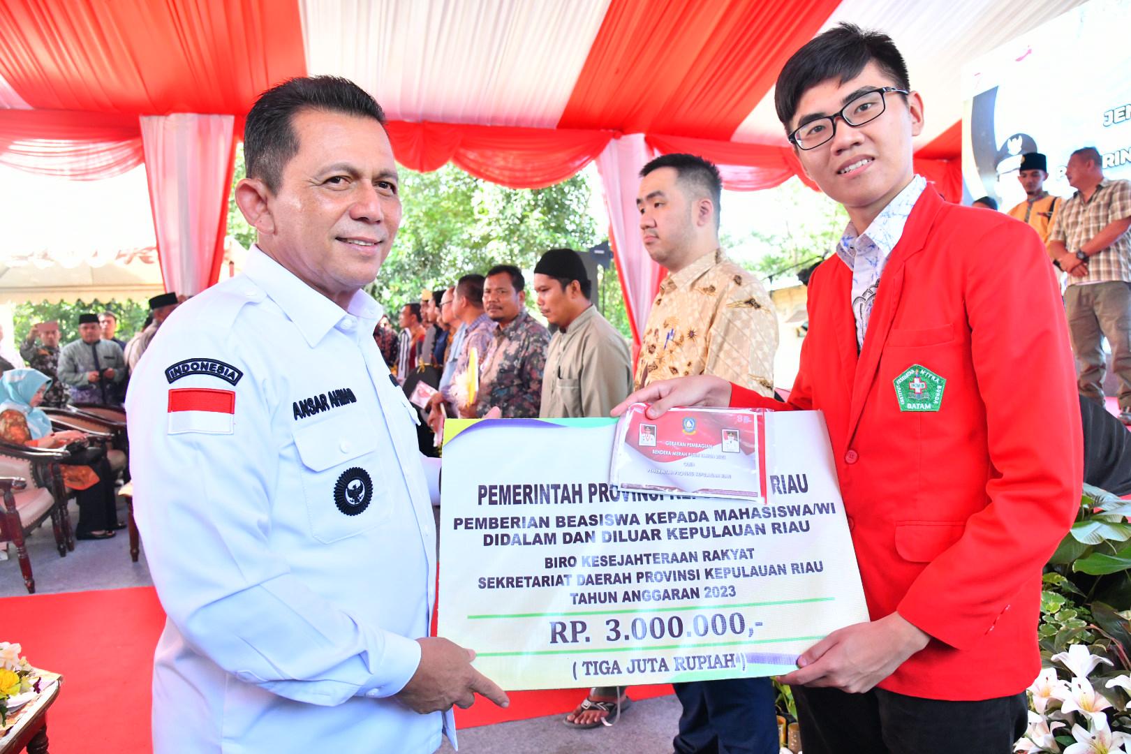 Kepala Biro Kesejahteraan Rakyat Setdaprov Kepri, Aiyub, mewakili Gubernur Kepri Ansar Ahmad, menjelaskan bahwa anggaran tersebut terbagi ke dalam enam kategori penerima beasiswa, yakni D3 Prestasi sebanyak 100 orang, D3 Tidak Mampu: 80 orang, D4/S1 Prestasi Dalam Kepri: 226 orang, D4/S1 Tidak Mampu (Prestasi) Dalam Kepri: 500 orang, D4/S1 Prestasi Luar Kepri: 230 orang dan S2 Prestasi Dalam Negeri: 40 orang.