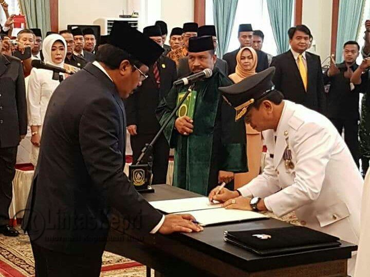 Tanjungpinang, LintasKepri.com – Gubernur Kepulauan Riau, Nurdin Basirun, resmi melantik Raja Ariza sebagai Penjabat Walikota Tanjungpinang, Senin (22/1), di Aula Gedung Daerah Kota Tanjungpinang.