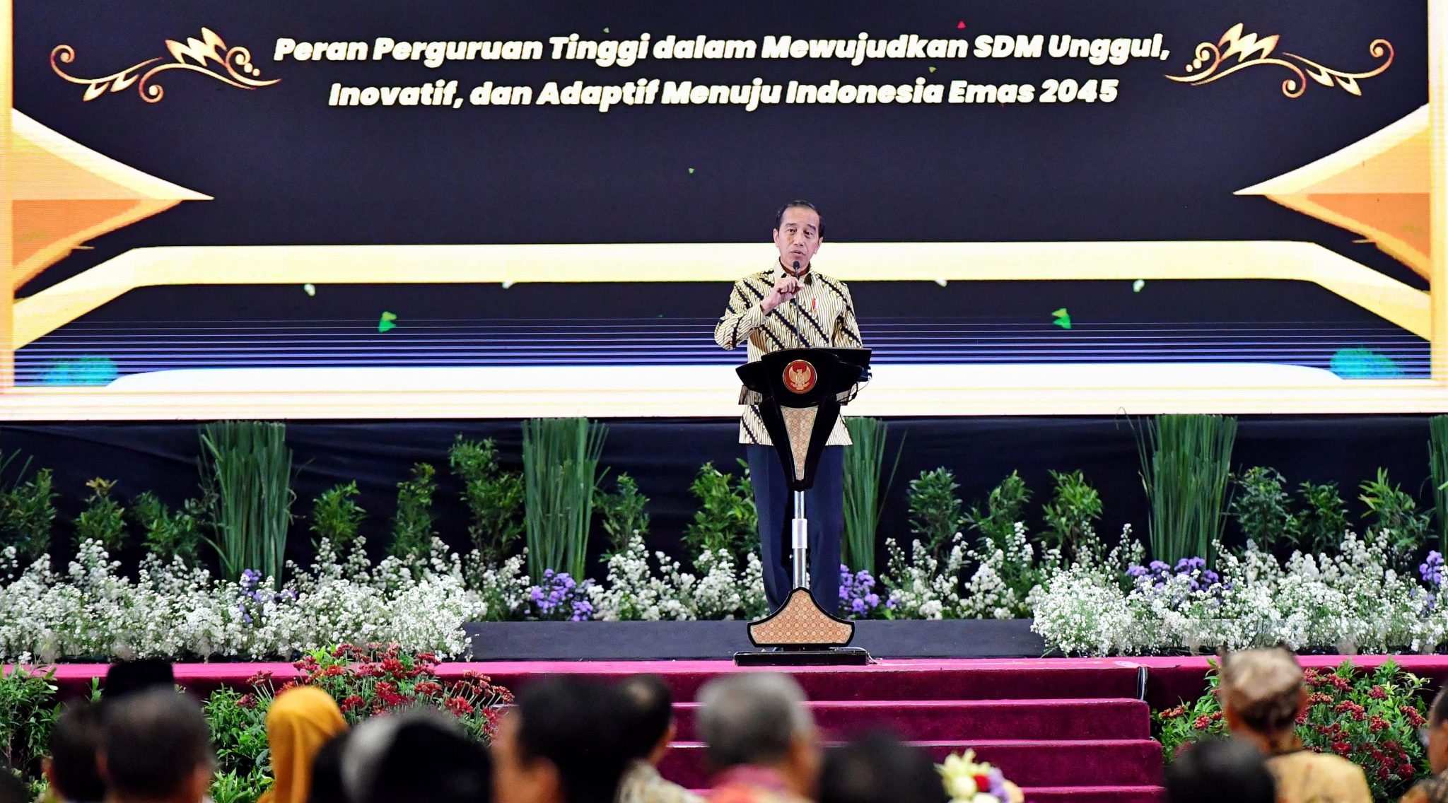 Hal tersebut disampaikan oleh Presiden Jokowi saat membuka Konvensi Kampus XXIX dan Temu Tahunan XXV Forum Rektor Indonesia, di Graha Unesa, Surabaya, Jawa Timur, Senin (15/01/2024).