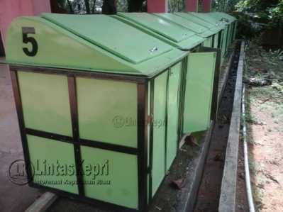 Tanjungpinang, LintasKepri.com – Bak sampah ukuran sedang berwarna hijau daun berjumlah 16 buah masih tertahan di gudang terbuka TPA Ganet.