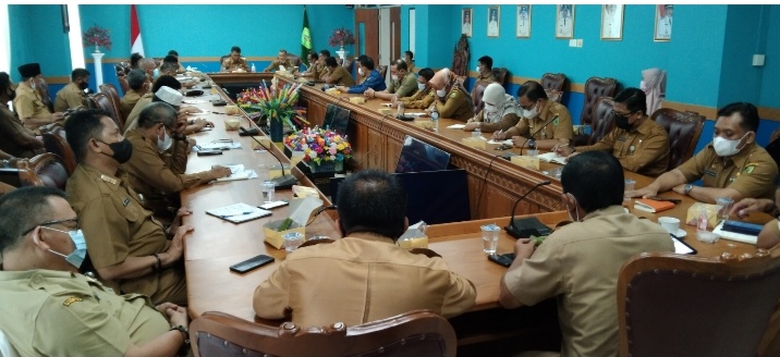 Natuna, LintasKepri.com – Bupati Natuna, Wan Siswandi, di dampingi Wakil Bupati Natuna, Rodhial Huda dan Pj. Sekda Natuna, Hendra Kusuma, memimpin Rapat Koordinasi (Rakor) Internal percepatan pembangunan dimasa pandemi, bersama seluruh pimpinan Organisasi Perangkat Daerah (OPD). Bertempat di ruang rapat lantai II Kantor Bupati Natuna, Bukit Arai, Kecamatan Bunguran Timur, pada Senin (31/05/2021) siang.