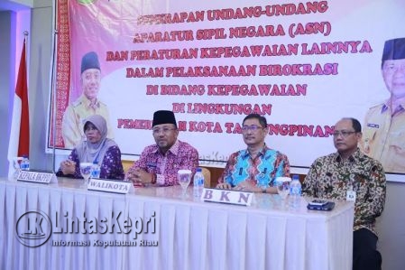 Walikota Tanjungpinang, H. Lis Darmansyah, SH, mengatakan sehubungan dengan undang-undang nomor 5 tahun 2014 ini, nantinya akan banyak perubahan yang signifikan pada sistem kepegawaian di seluruh Indonesia, “ Kegiatan ini sangat penting, untuk memberikan pengetahuan dan pemahaman, supaya masing-masing unit kerja benar-benar memahami banyak hal atas perubahan pada sistem kepegawaian, hingga nantinya, dapat diimplementasikan secara benar,” kata Lis.