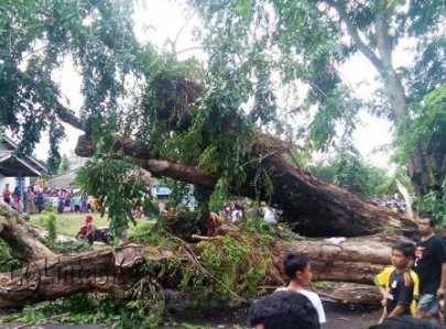 Selain itu juga, kabel listrik dan lampu jalan rusak dihantam pohon naas tersebut. (Aliasar)