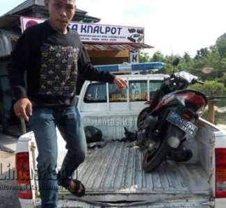 Akibatnya, kaki pengendara motor Vario BP 2489 WM patah serta langsung dilarikan ke Rumah Sakit Umum Provinsi (RSUP) oleh warga yang menyaksikan kejadian itu.