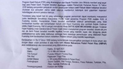 Pekanbaru, LintasKepri.com – Mahasiswa yang tergabung dalam Aliansi Mahasiswa Peduli Petani Riau (AMPeR) Akan turun…