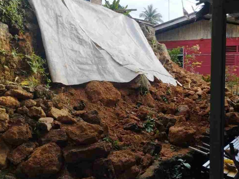 Babinsa Kelurahan Kemboja, Sertu Nurdin Kama, yang ikut meninjau lokasi bersama perangkat RT/RW setempat, menyampaikan bahwa kondisi lereng masih rawan runtuh apabila hujan deras kembali turun.