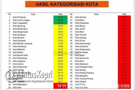 Tanjungpinang, LintasKepri.com – Ibu Kota Provinsi Kepulauan Riau, Tanjungpinang mendapatkan “nilai merah” dalam pelayanan publik terbaik se-Kota Indonesia dengan nilai 20.50 diurutan 47 di zona merah. Sedangkan Kota Batam diposisi 22 dengan nilai 50.50 di zona kuning.