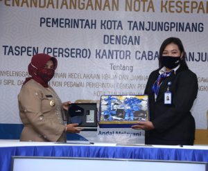 Penandatanganan dilakukan langsung oleh Walikota Tanjungpinang, Hj. Rahma, S.IP dengan Branch Manager PT. Taspen (Persero) Kantor Cabang Tanjungpinang, Mardiani Pasaribu di Aula Kantor PT. Taspen (Persero) Cabang Tanjungpinang, Jl. Daeng Celak Km.8, Sungai Carang Tanjungpinang, Selasa (3/11) Sore.
