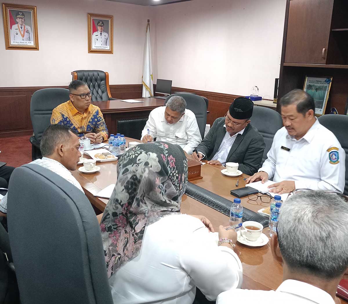 Pertemuan ini membahas strategi peningkatan Pendapatan Asli Daerah (PAD) melalui optimalisasi pengelolaan pelabuhan, khususnya labuh jangkar, serta kesiapan Kepri menghadapi dinamika global seperti perang tarif dagang antara Amerika Serikat dan China.