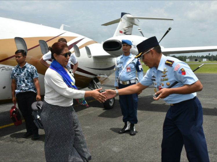 Menteri Susi beserta rombongan tiba di Bandara Lanud Raden Sadjad (RSA) Ranai, pada Jum’at (24/08/2018) siang, sekitar pukul 11:25 WIB, dengan menumpangi pesawat pribadinya, berlogo Susi Air Piaggio Avanti II P 180.