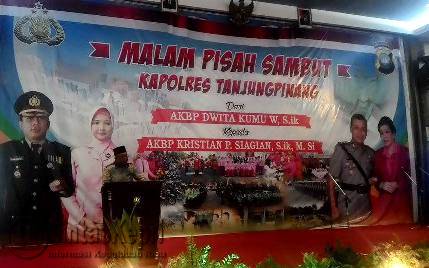 Tanjungpinang, LintasKepri.com – Walikota Tanjungpinang, H Lis Darmansyah SH, mengadiri acara pisah sambut Kapolres Tanjungpinang, Ajun Komisaris Besar Polisi (AKBP) M Dwita Kumu W Sik, kepada Kapolres yang baru AKBP Kristian P Siagian Sik M Si, di Ballroom Hotel Bintan Beach Resort (BBR) Jalan Pantai Impian Kota Tanjungpinang, Rabu (30/09) malam.
