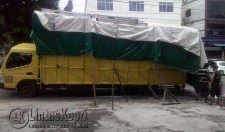 Kemudian terlihat sopir dan kernet yang enggan menyebutkan namanya terlihat membongkar muatan barang.